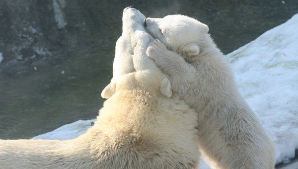 Сезонное исчезновение льдов в арктических морях заставляет белых медведей высаживаться на сушу и пережидать период открытого моря на берегу, не имея возможности охотиться и нормально кормиться.